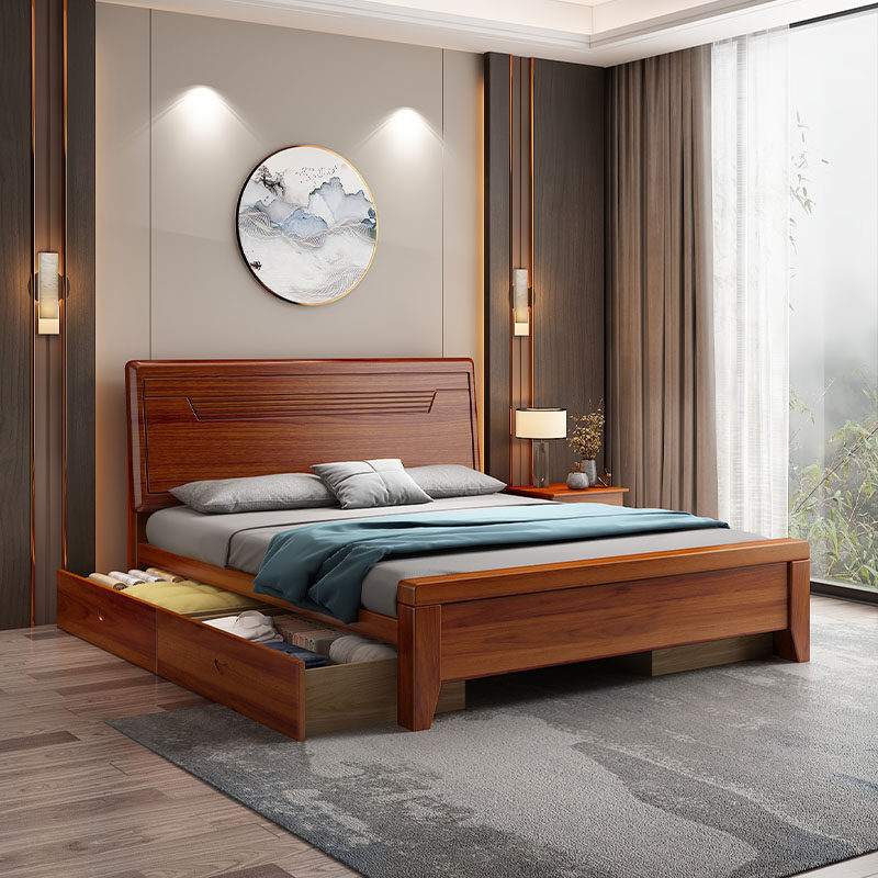 实木床榫卯床1.8米大床1.5M双人床经济型简约现代家具储物 新中式