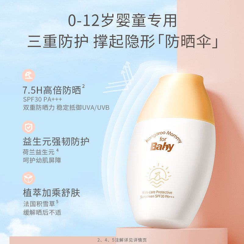 专用隔离霜防晒乳SPF30 袋鼠比比儿童温和防晒霜宝宝夏季