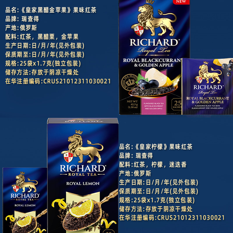 为您提供商品RICHARD瑞查得红茶柠檬红茶锡兰红茶俄罗斯进口浆果味红茶茶包的详细介绍,