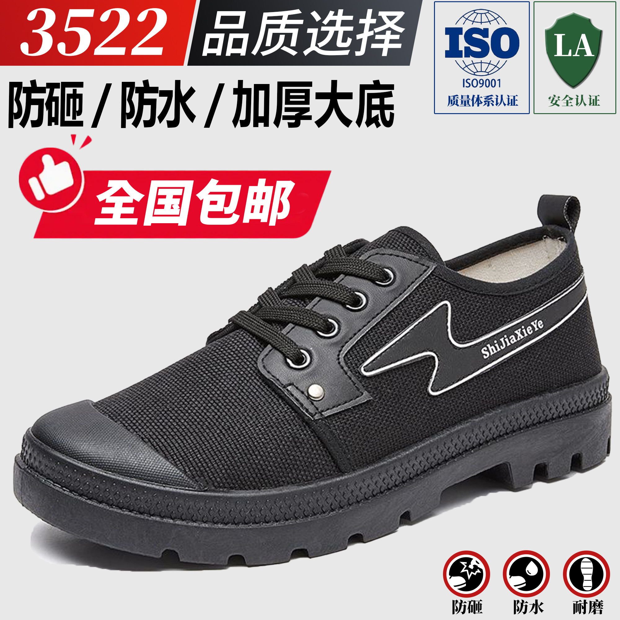 劳保鞋 3522正品 防砸防水耐磨解放鞋 工地厚底男鞋 子 老保透气工作鞋由