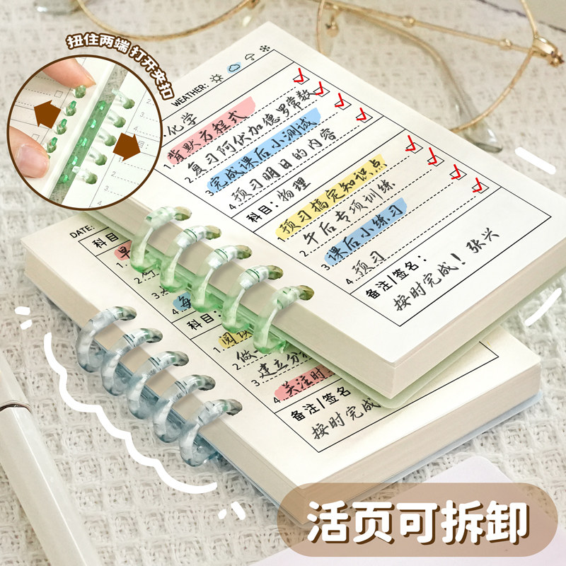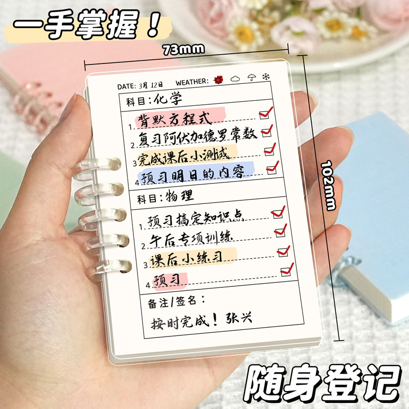 作业登记本笔记本本子A7高颜值活页笔记本小本子不硌手可拆卸口袋本迷你线圈本记事本透明简约风单词本计划本由