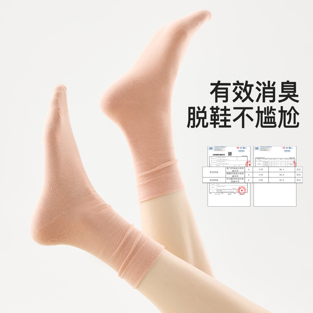 蕉内银皮301S袜子女中筒袜防臭运动透气短袜春夏船袜棉袜 10A抗菌