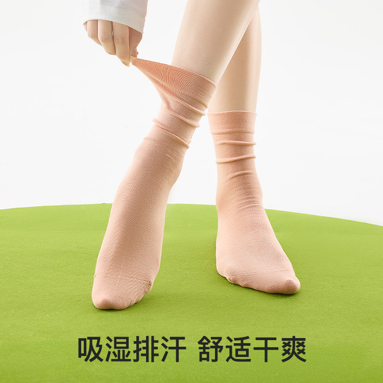 白色堆堆袜子女款 中筒纯棉黑色女士无骨2026新款 爆款 月子袜 夏薄款