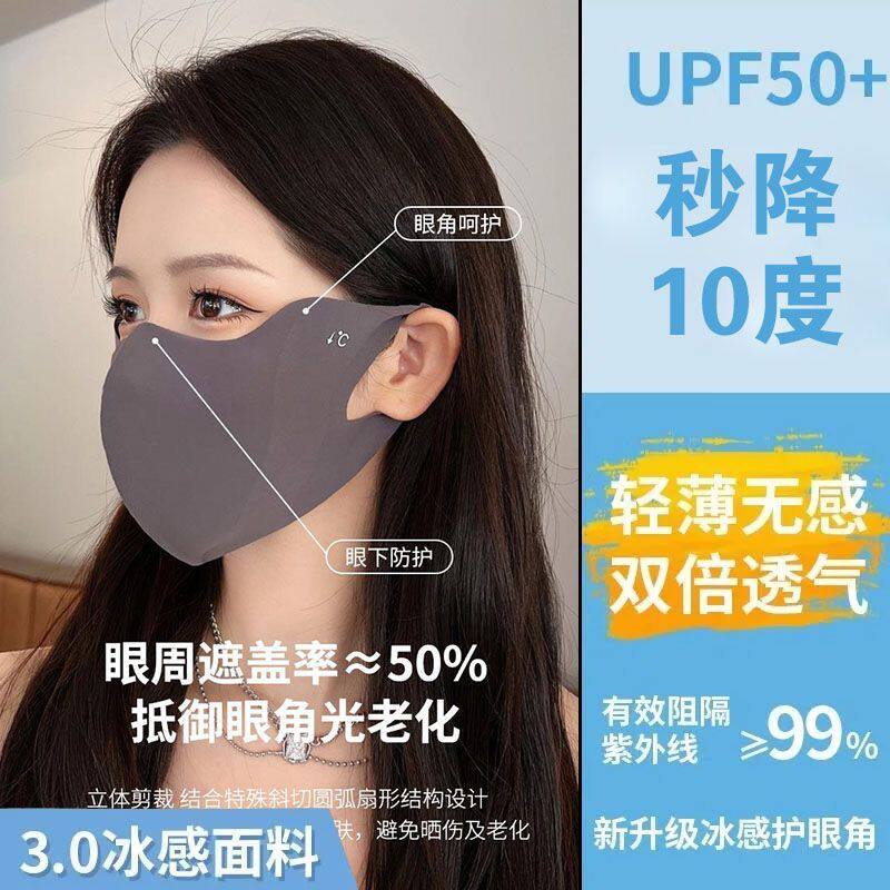 冰丝防晒面罩遮脸夏季 透气口罩女防紫外线遮阳护眼角面纱 骑行薄款