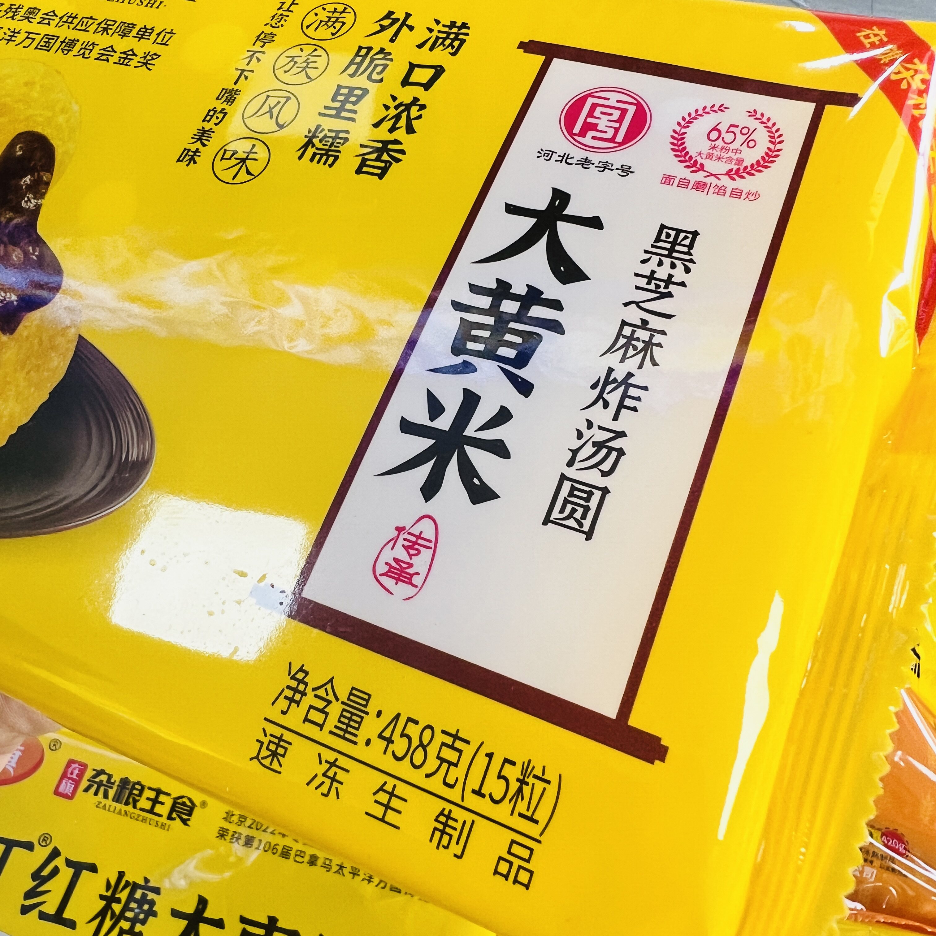 宵 在旗杂粮主食大黄米黑芝麻炸汤圆458g速冻早餐汤圆传统小吃炸元由