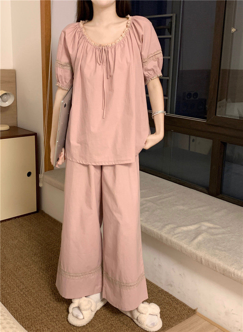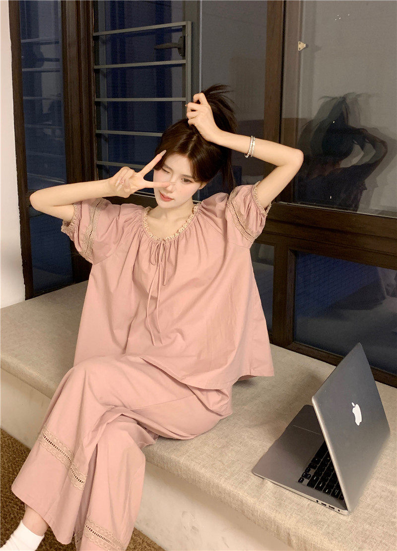 家居服套装 宫廷风设计感简约全棉睡衣女夏季 长裤 短袖 2026新款 韩版由