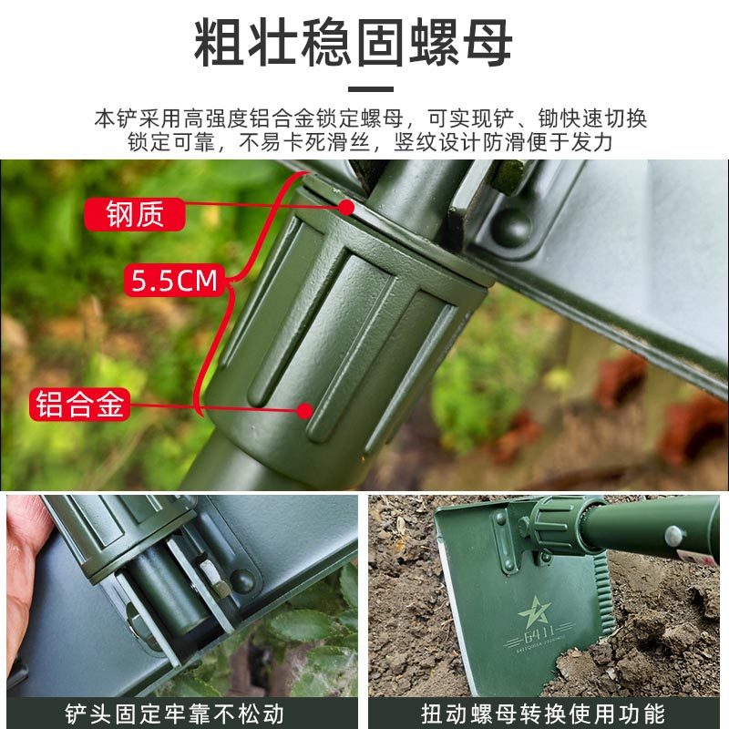 多功能工兵铲户外兵工铲车载铲子锹加厚钓鱼赶海露营松土铁锹工具