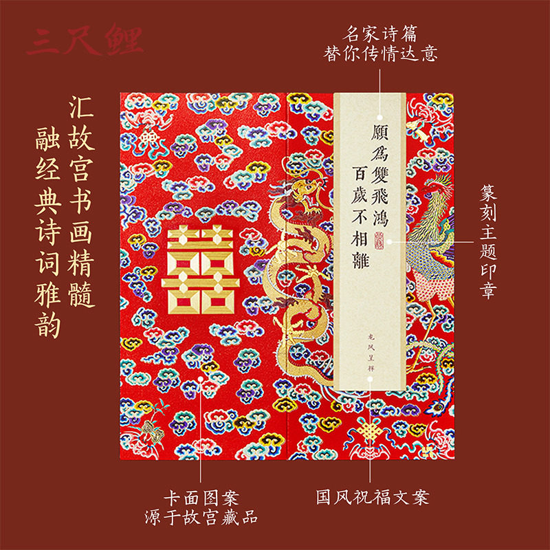 三尺鲤国潮故宫文创锦书贺卡文字书信贺卡手写信古典中国风高颜值生日毕业礼物祝福语高级感旗舰店