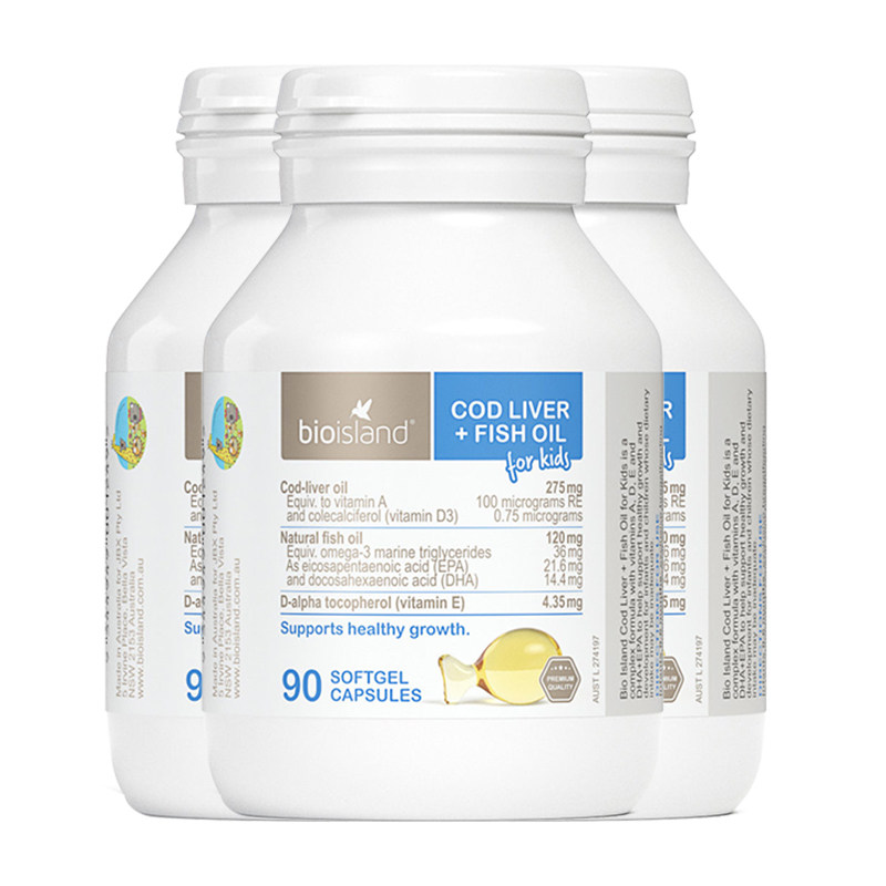 鱼油宝宝DHA鱼肝油眼脑成长90粒 island婴幼儿童鳕鱼肝 澳洲bio