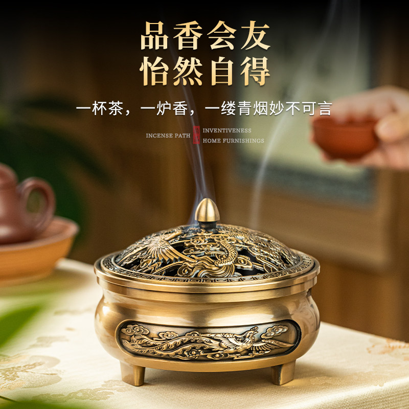 供奉香炉家用室内铜合金香薰炉上香礼佛莲花焚香炉线香插宣德炉大