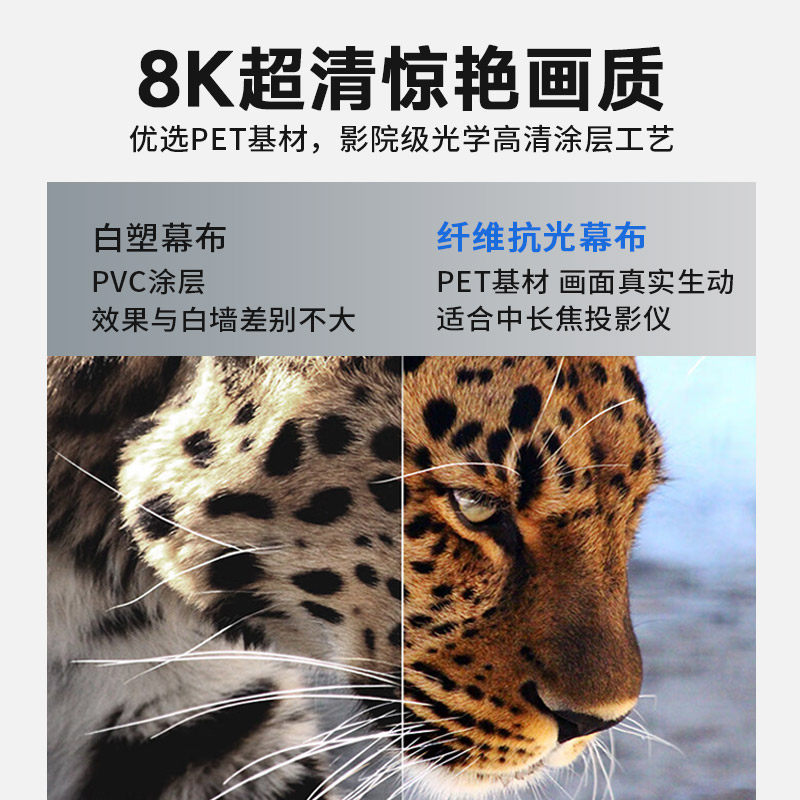 俊翼4K高清免打孔抗光投影幕布家用办公壁挂投影仪幕布84寸100寸120寸移动便携客厅卧室简易投影幕布白天直投