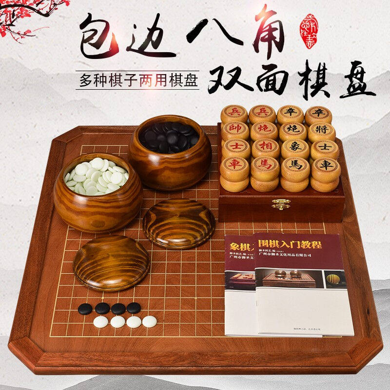 围棋五子棋象棋二合一棋盘实木标准19路小学生儿童初学套装 成人版