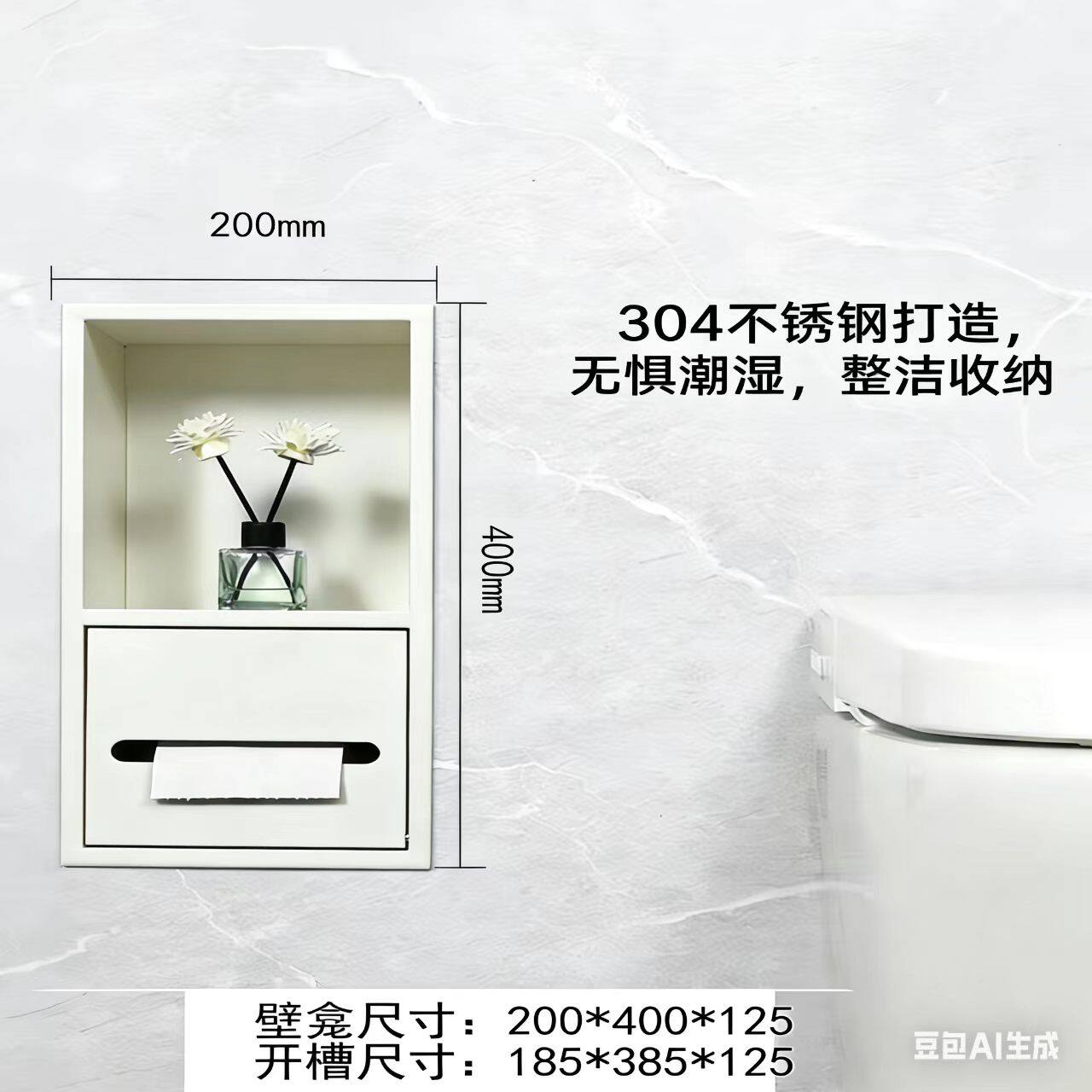 为您提供商品卫生间不锈钢嵌入式 抽纸盒浴室置物架壁柜可定制 纸巾盒壁龛暗装的详细介绍,