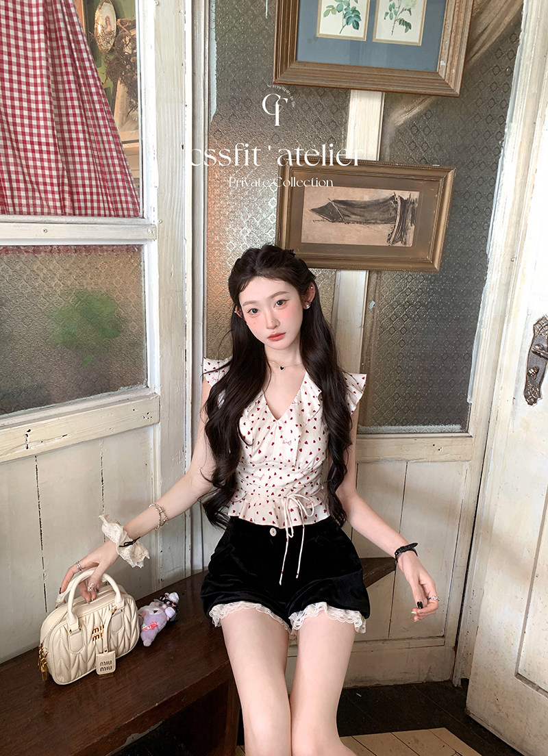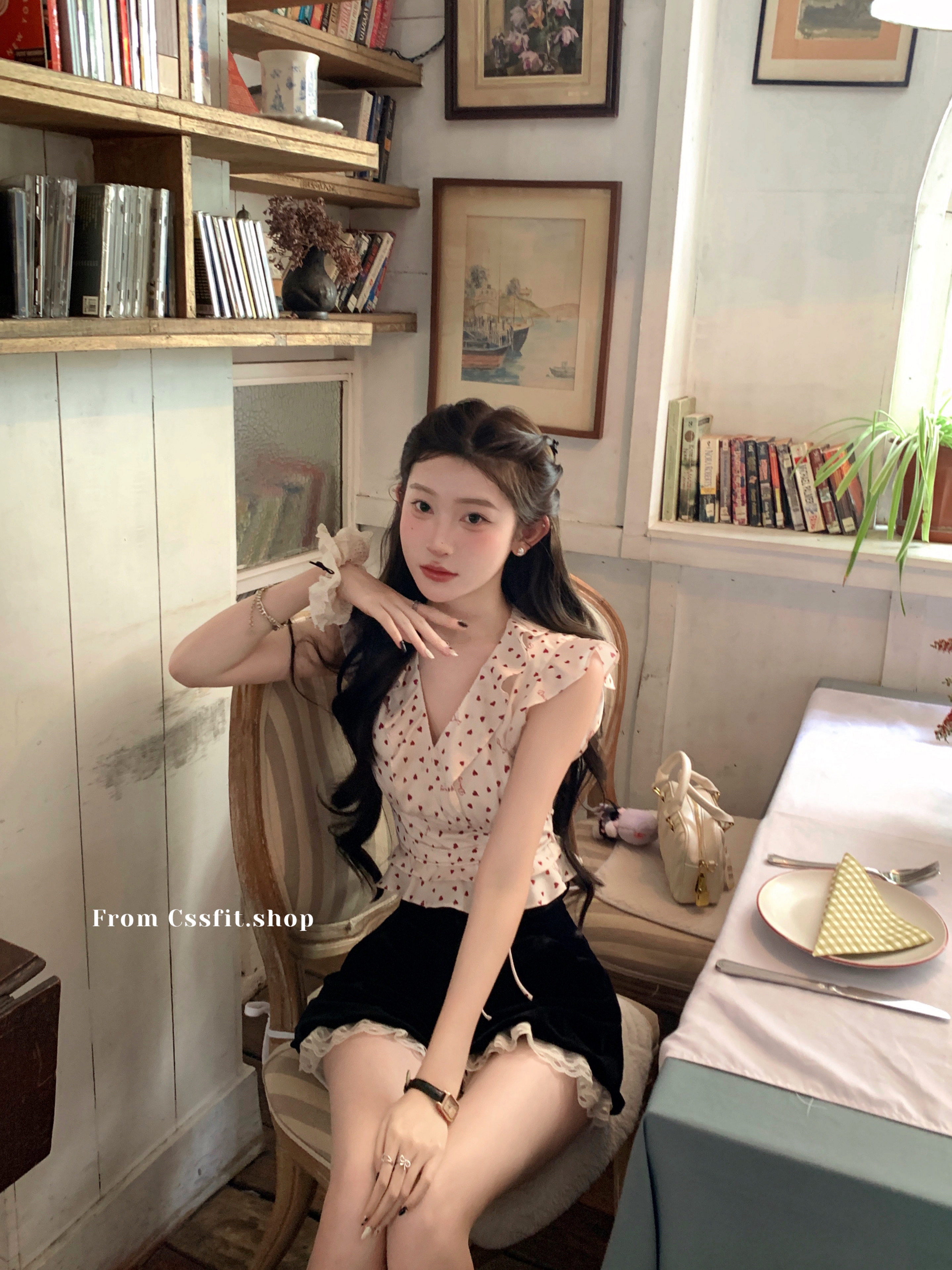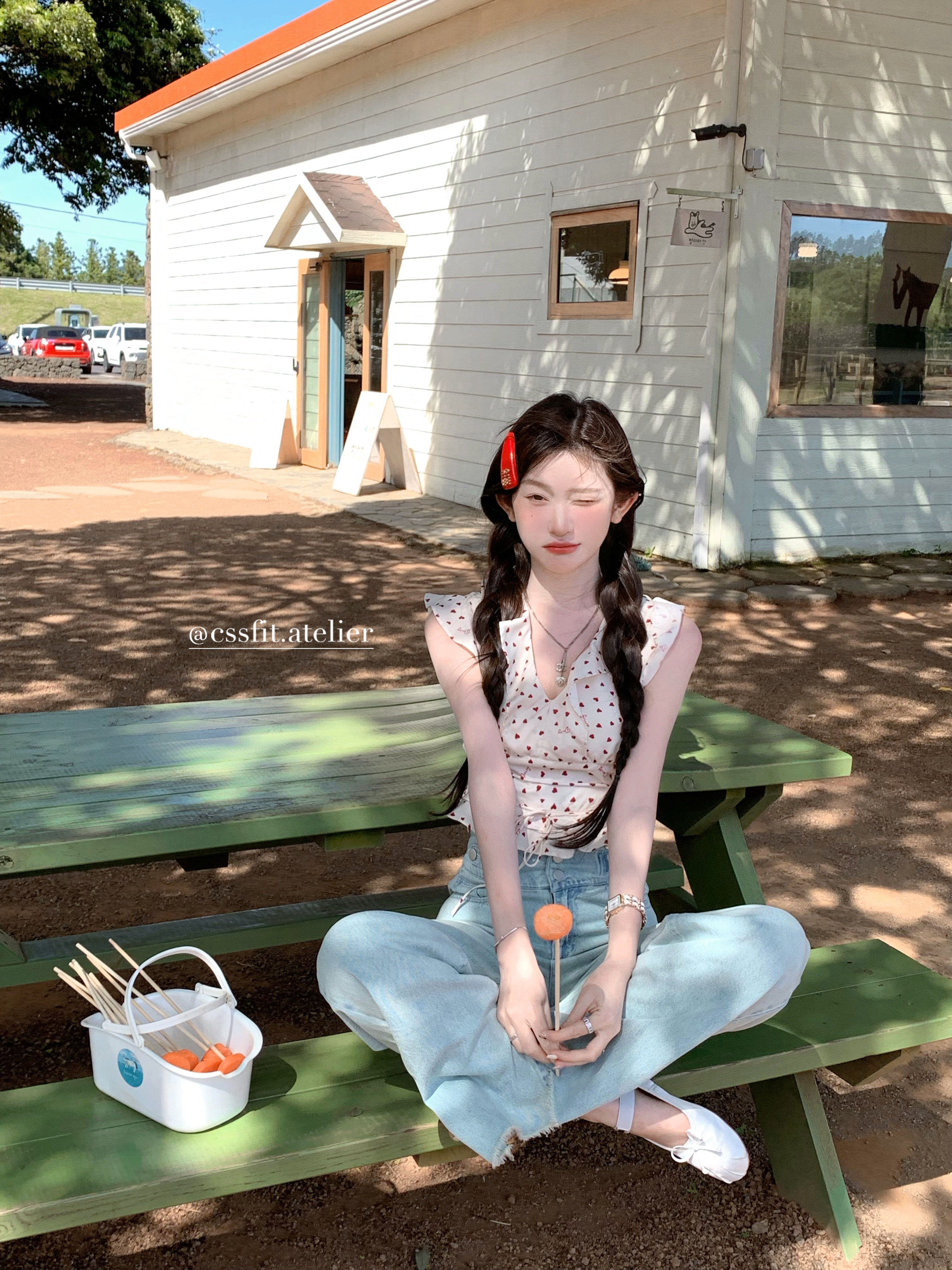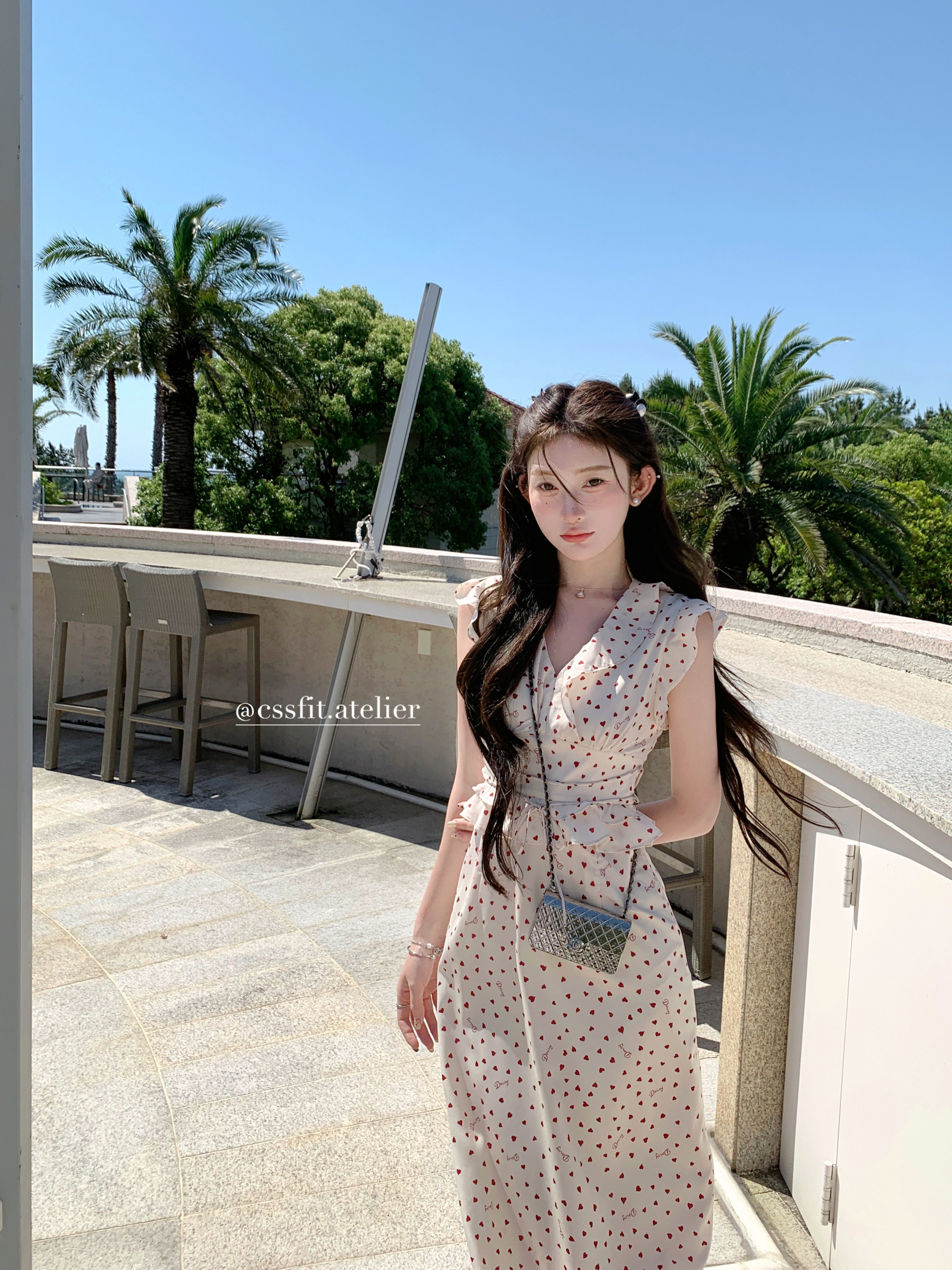 迟伞伞 daisy桃心系带v领衬衫 小飞袖 连衣裙时髦长裙女 济州车厘子