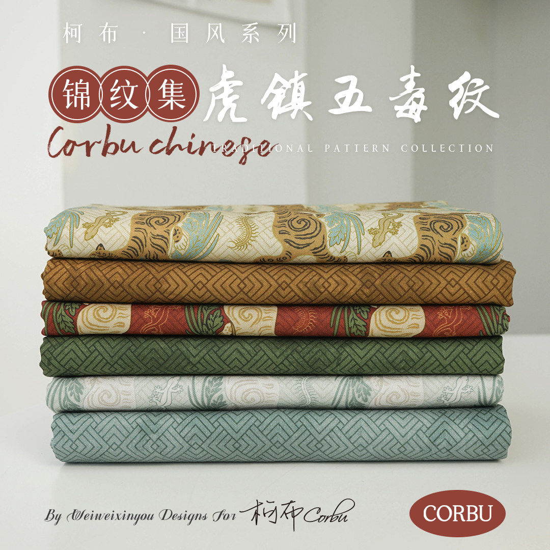 柯布 20支平纹棉布国风仿宋锦锦纹汉服马甲手工面料 虎镇五毒纹