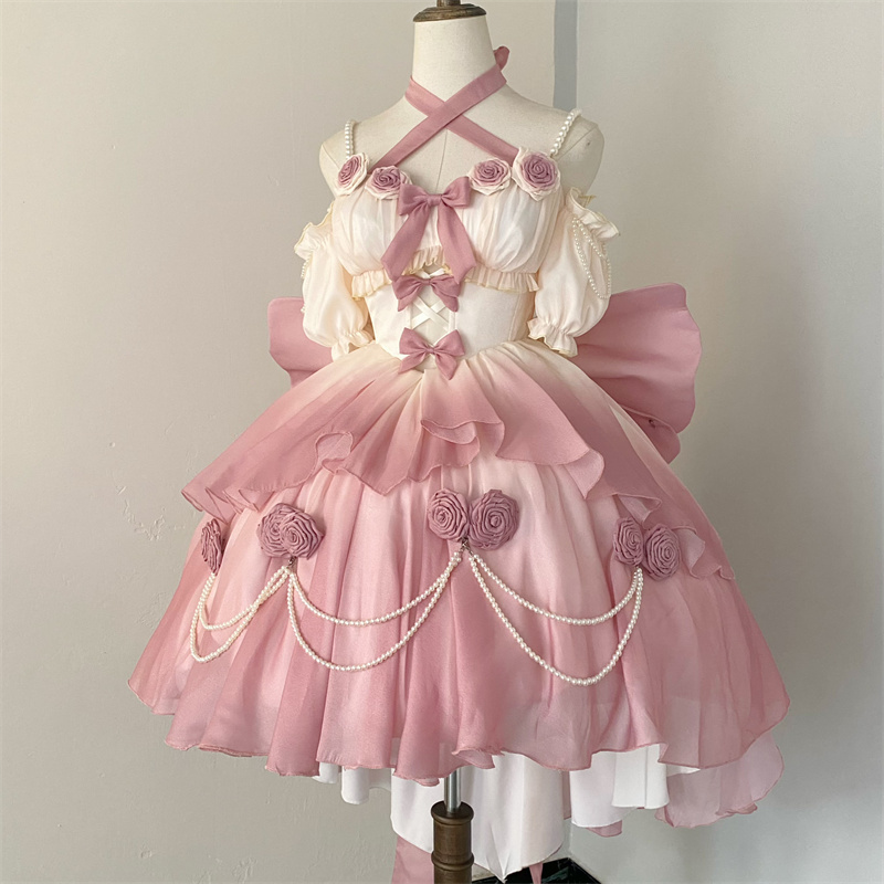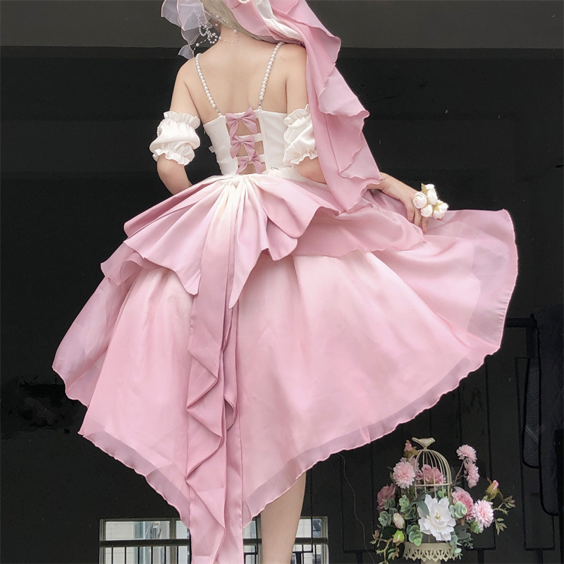 蝴蝶结洛丽塔软妹大小姐公主裙 粉色公主裙可爱lolita花嫁温柔洋装