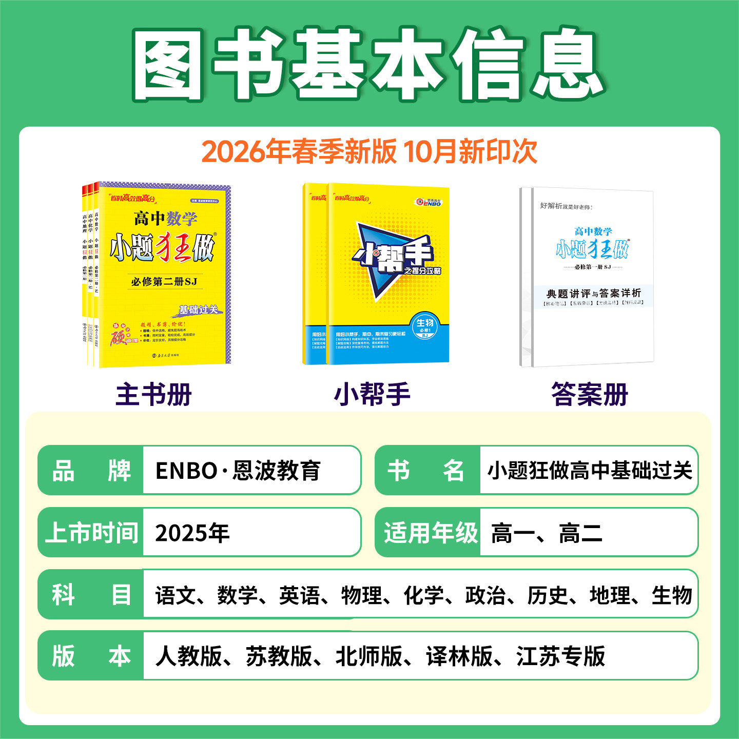 为您提供商品2026春新版 高一 高二必修选修 恩波高中基础过关选择性必修下册第二册必修23语文数学英语物理化学历史地理生物政治 小题狂做的详细介绍,