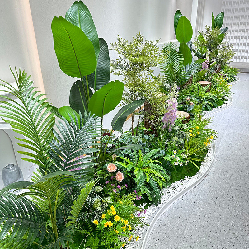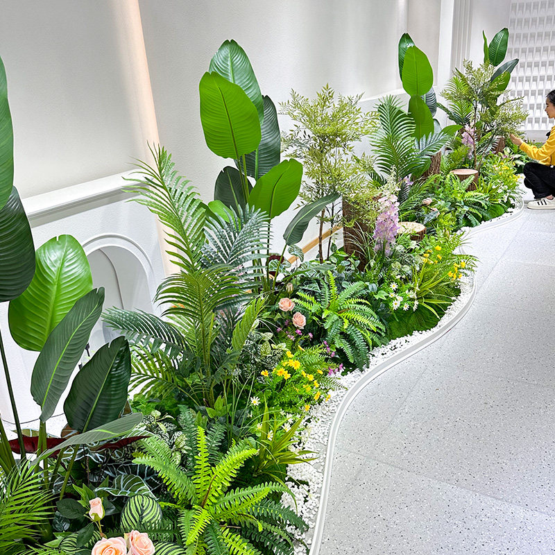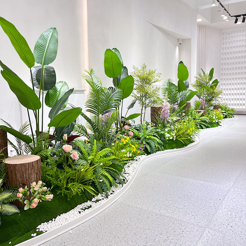 饰造景商场橱窗装 饰布置 仿真天堂鸟散尾葵绿植景观商业门店装由