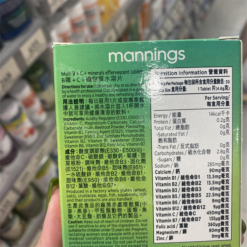 矿物质30片无糖橙味现货正品 香港代购 mannings万宁B杂 包邮