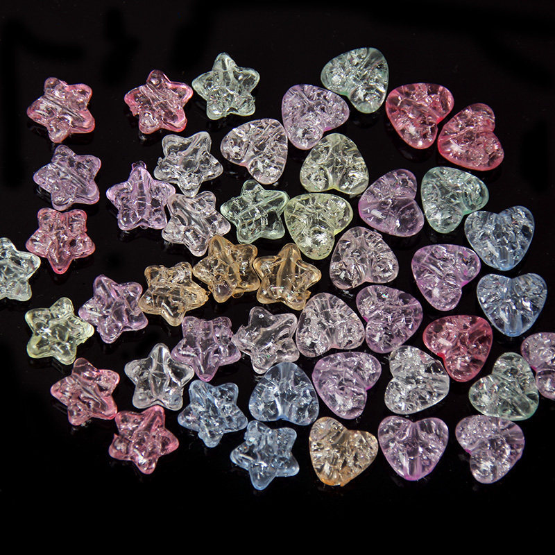 亚克力五角星爱心爆花珠裂纹珠散珠DIY手工饰品手链配件项链材料