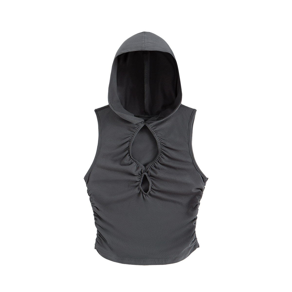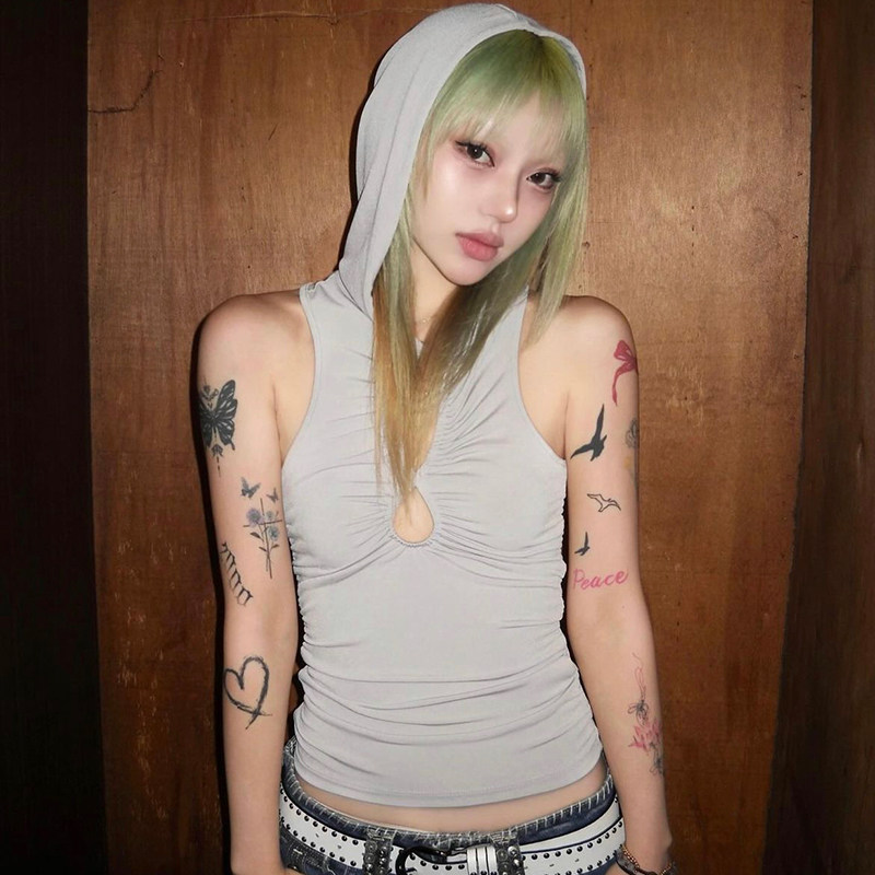 露脐背心夏季 上衣女褶皱收腰显瘦短款 gagaopt纯欲风镂空连帽无袖