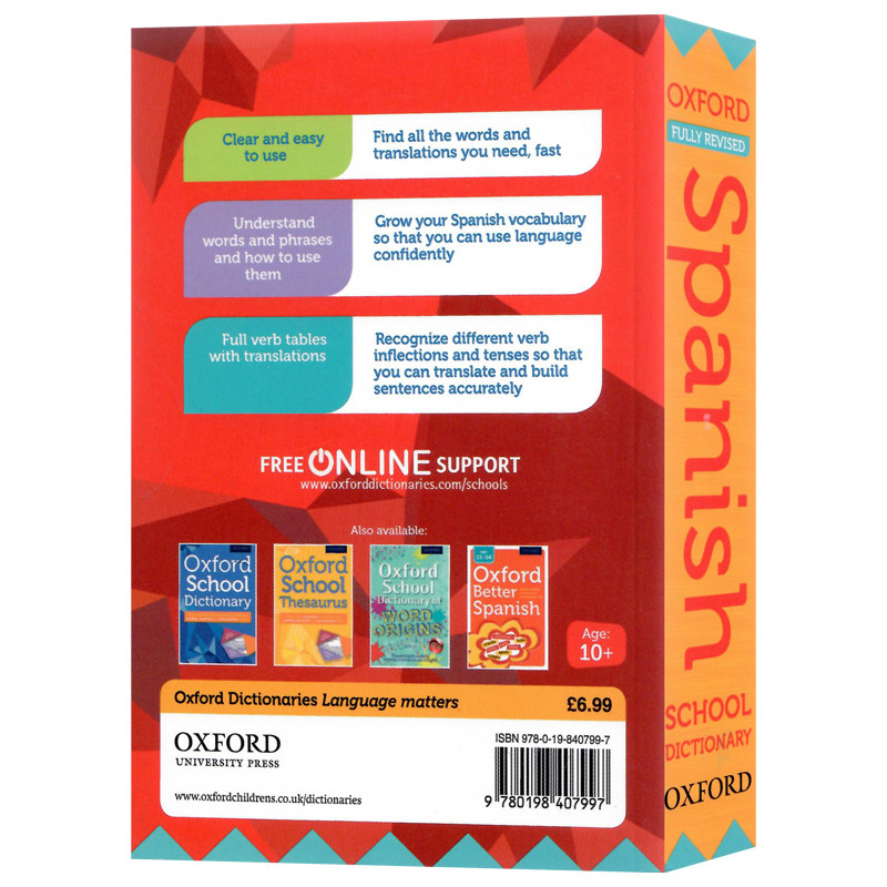 西班牙语词汇短语词典 学生英语工具书提高词汇量课外学习用书Oxford出版 Dictionary 英文原版 Spanish School Oxford 2017