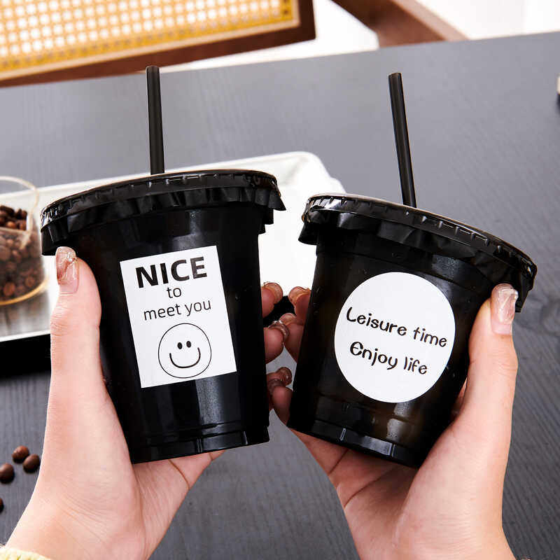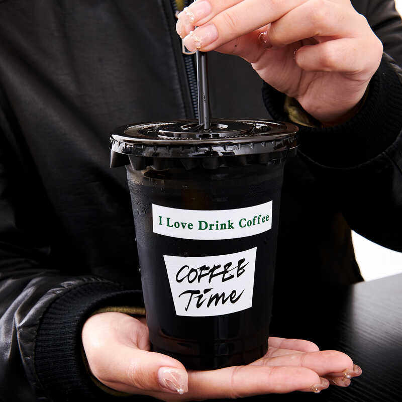 咖啡杯带盖pet透明冷饮拿铁奶茶外卖打包杯 网红一次性黑色冰美式