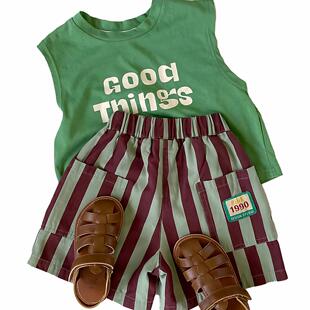 男女童纯棉短袖 儿童夏季 背心无袖 套装 两件套 T恤透气上衣条纹短裤由