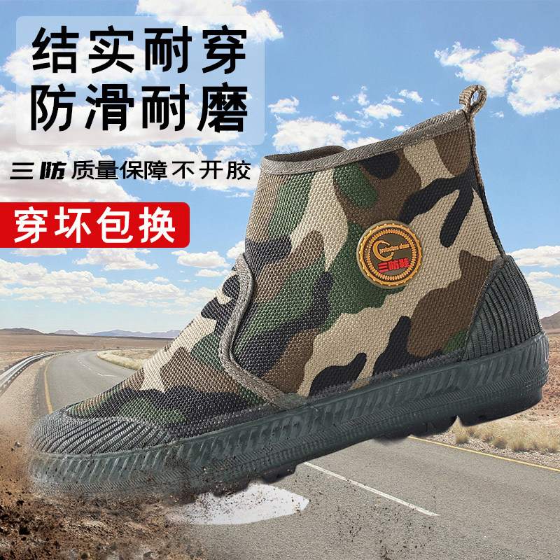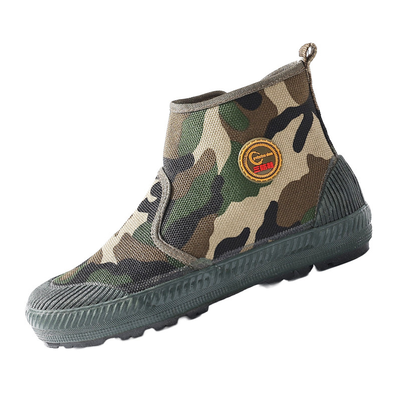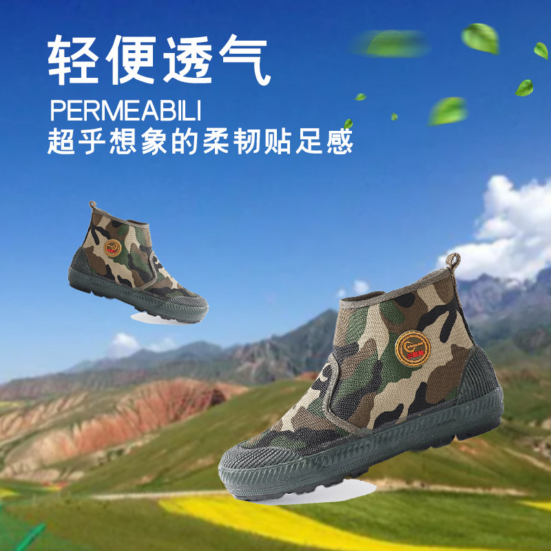 迷彩劳保工地解放鞋 防臭帆布透气防滑耐磨工装 鞋 农田建筑干活胶鞋