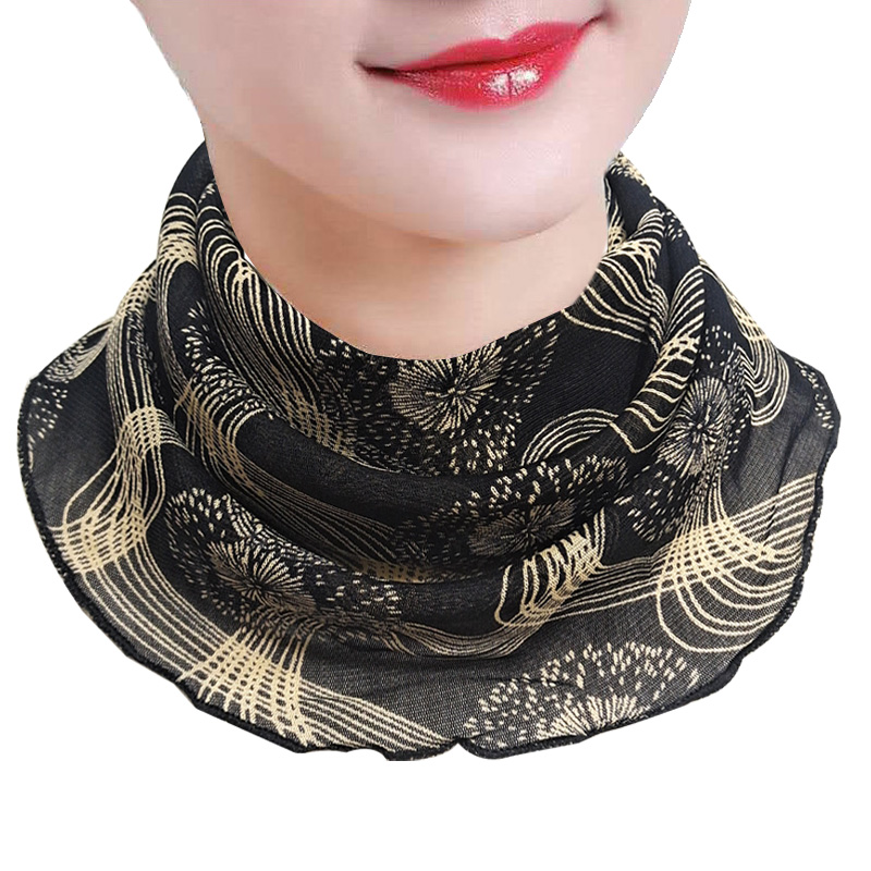 百搭挂耳式 围脖护颈脖套防晒面罩纱巾 面纱百变丝巾时尚 围巾女薄款由