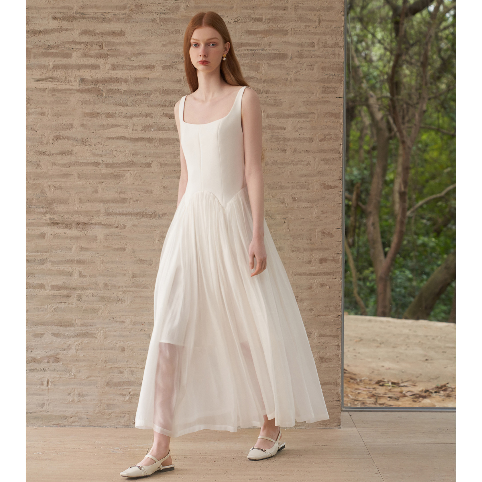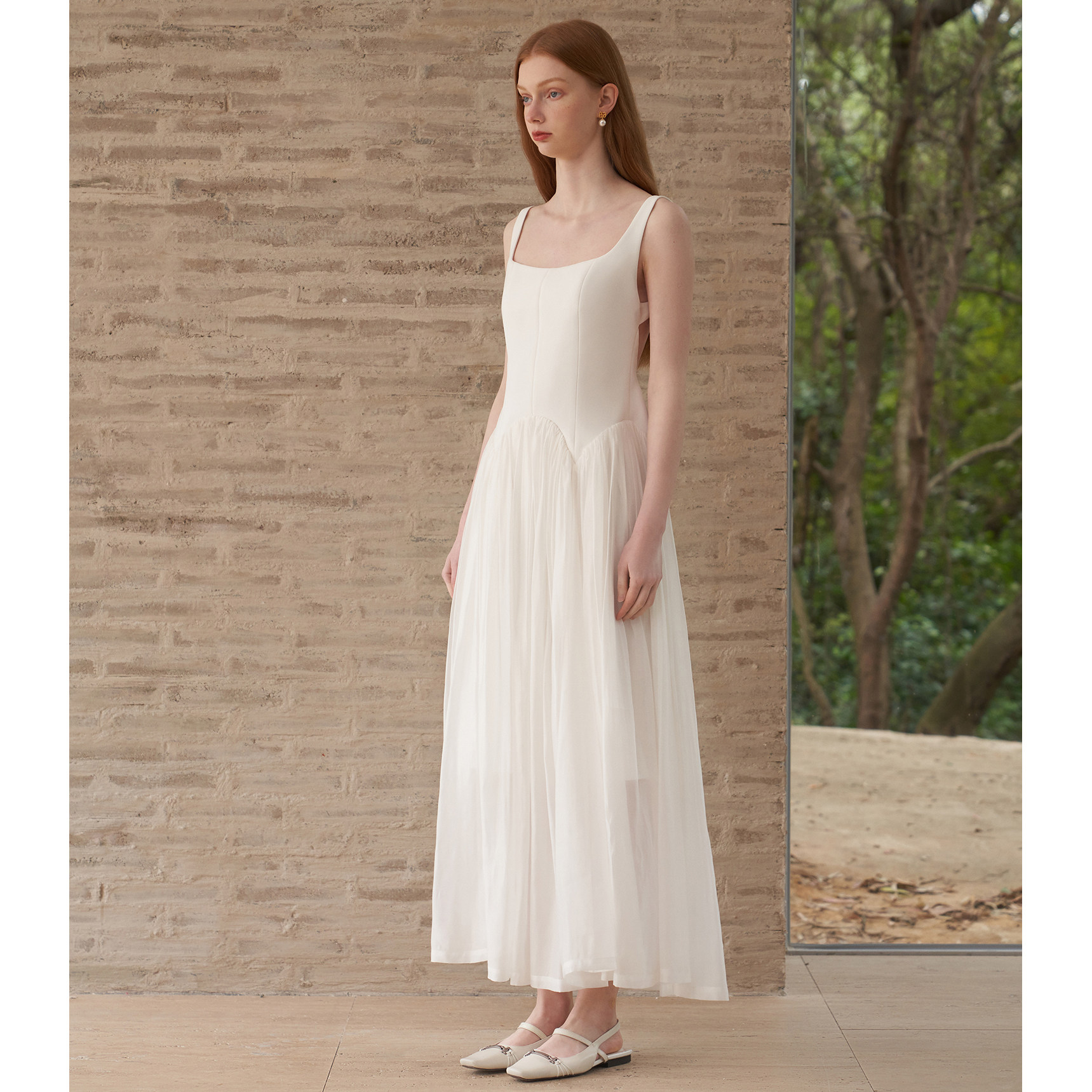 HSU 折 ESTER 白色露背连衣裙百搭木兰 2026早春新款