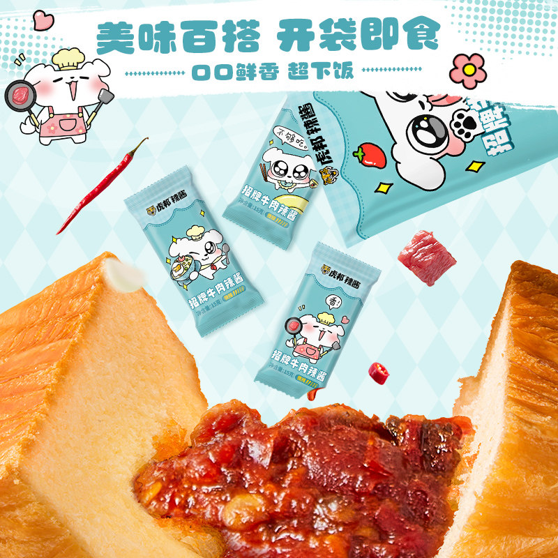 为您提供商品虎邦招牌牛肉辣酱15g小包装 辣椒酱拌面下饭 虎邦辣酱这狗联名的详细介绍,