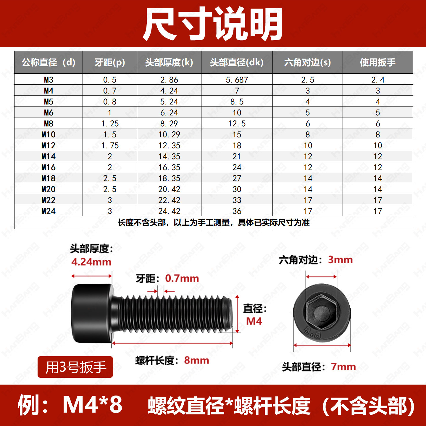 6X8 佰瑞特12.9级高强度内六角螺丝加长全牙螺栓圆柱头杯头螺钉M3