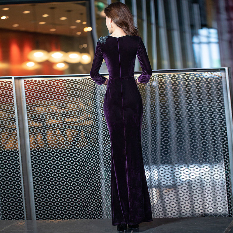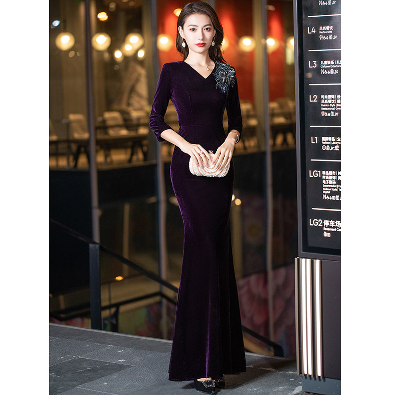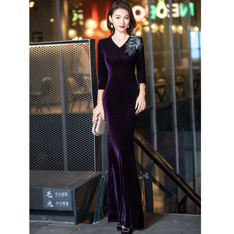 为您提供商品丝绒妈妈装 喜婆婆婚礼宴会高级感鱼尾显瘦主持裙 晚礼服女2026新款的详细介绍,