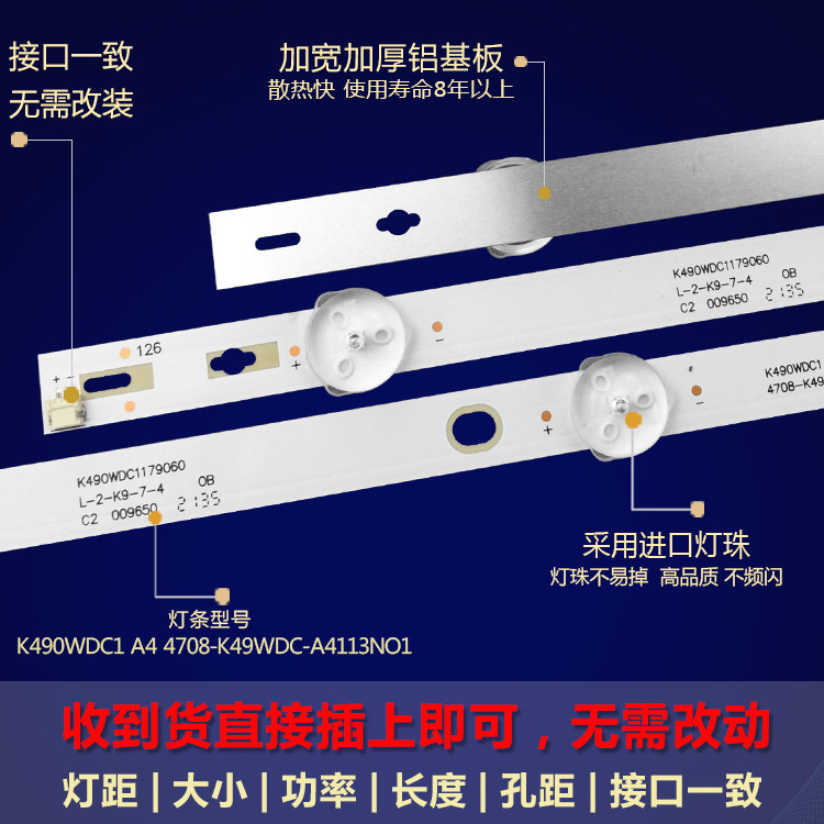 为您提供商品4708 新适用飞利浦49PUF6092 T3灯条K490WDC1 A4113N01 K49WDC的详细介绍,