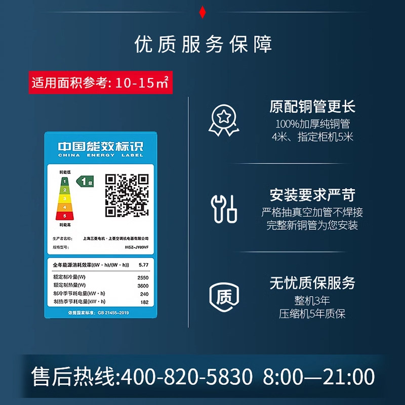 三菱电机空调MSZ JY09VF1匹一级变频冷暖型挂机 日本进口内机由