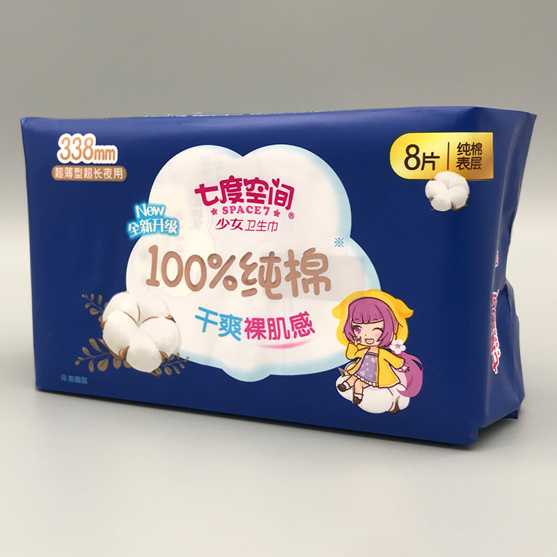 七度空间卫生巾夜用加长338少女纯棉柔呵护超薄透气护翼姨妈巾4包