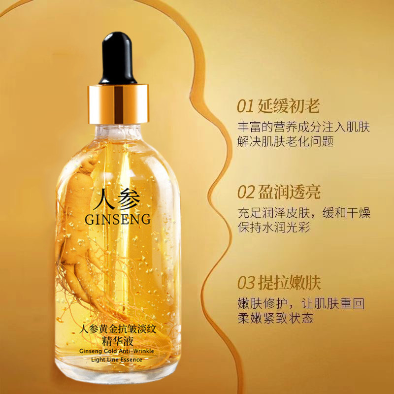 正品 抗初老滋润紧致护肤 人参黄金抗皱淡纹精华液提亮肤色补水保湿