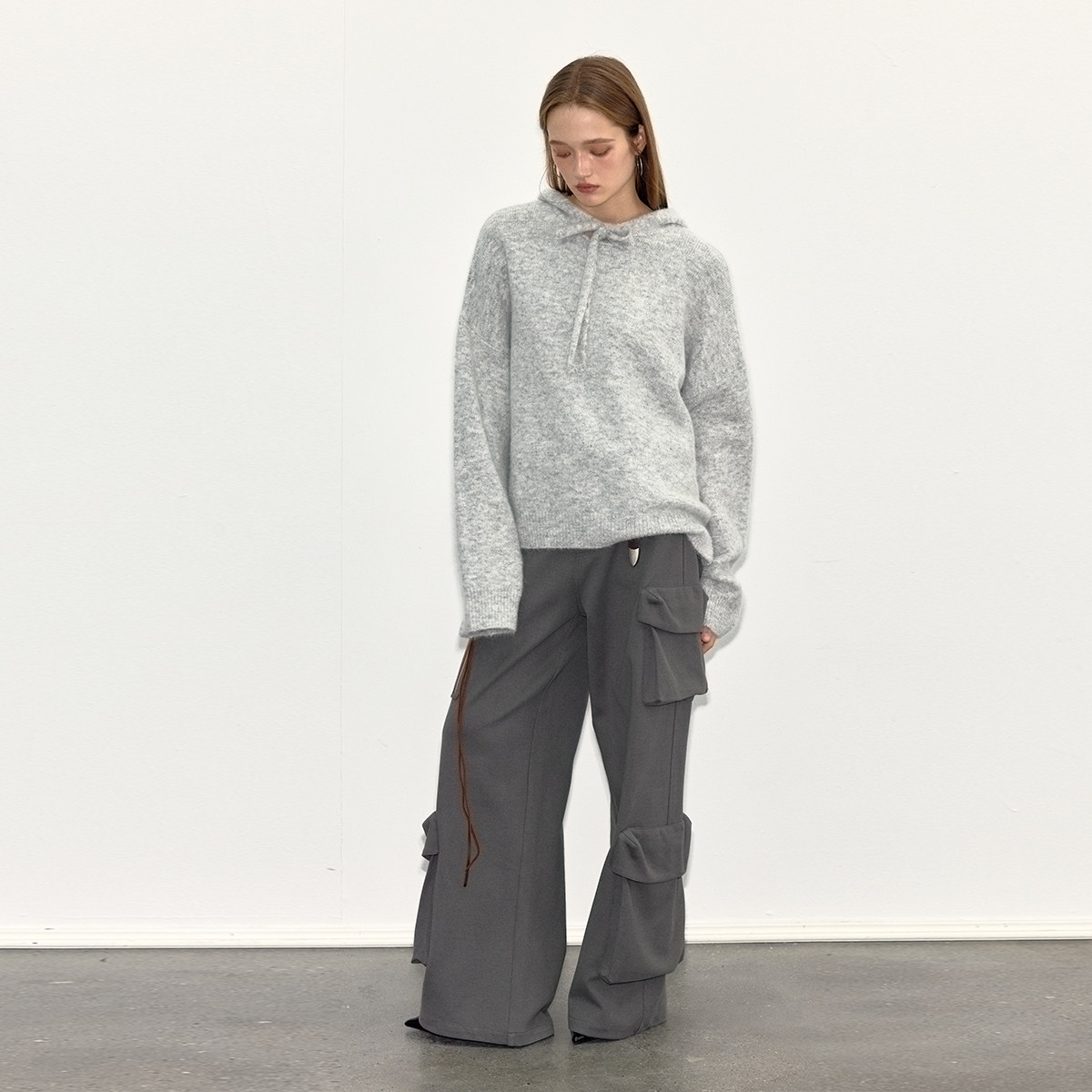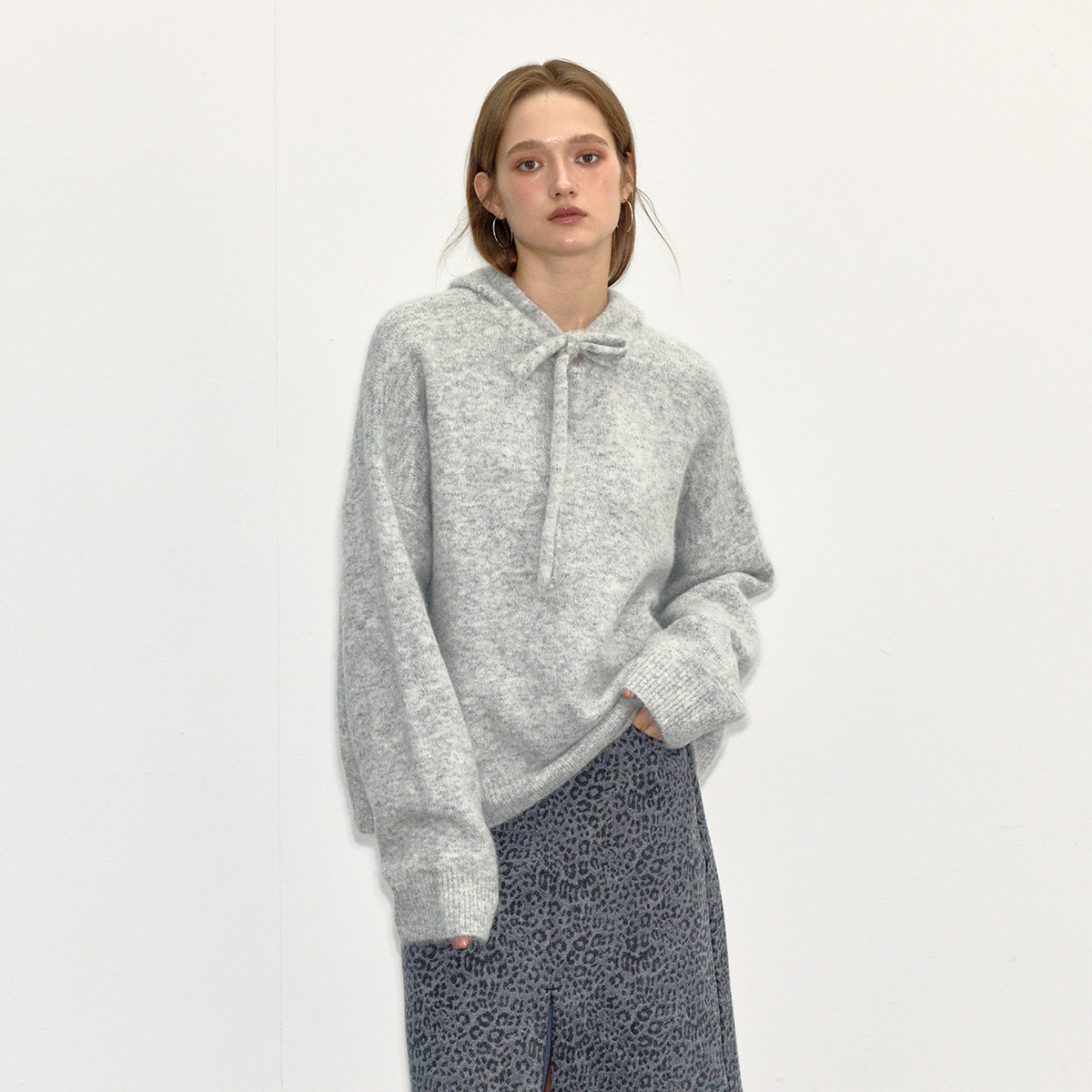 BiLLconch纯色羊毛针织衫 宽松休闲套头毛衣女秋冬 连帽毛衣由