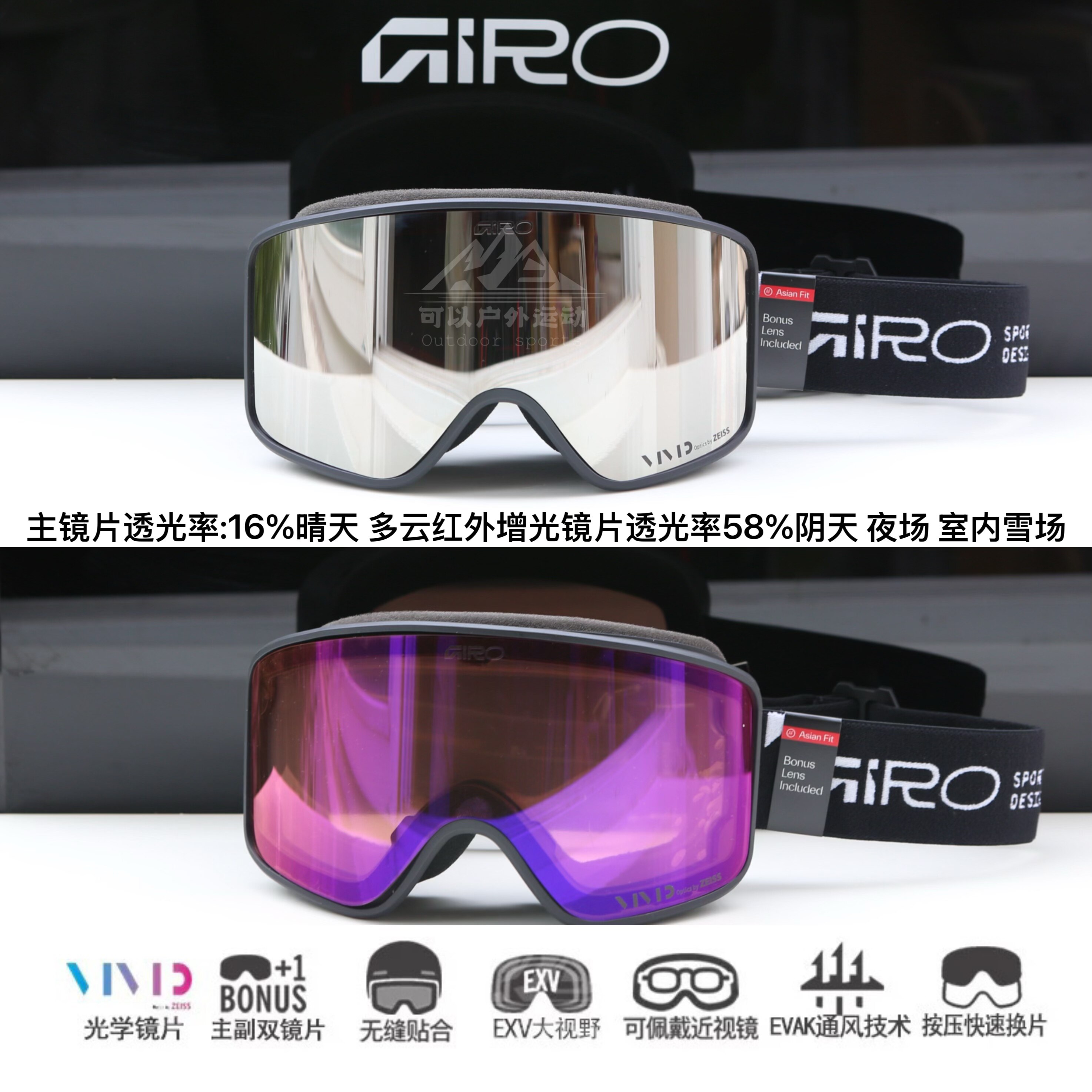 为您提供商品护目镜滑雪眼镜透气高清防雾防风眼镜装 备 男女款 GIRO滑雪镜26新款的详细介绍,