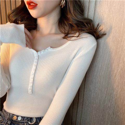 洋气百搭针织打底衫 心机上衣设计感内搭长袖 v领毛衣女秋冬很仙