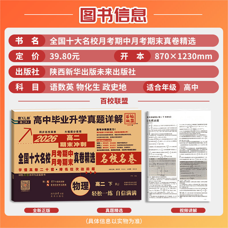 为您提供商品2026百校联盟新高一高二上下册高中十大名校真卷毕业升学真题详解同步测试卷语文数学英语物理化学生物必修卷子分班高考联考牛皮纸的详细介绍,