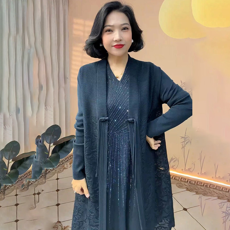 高端重工烫钻长外套气质喜婆婆冰麻针织婚宴礼服大码 外披 提花开衫