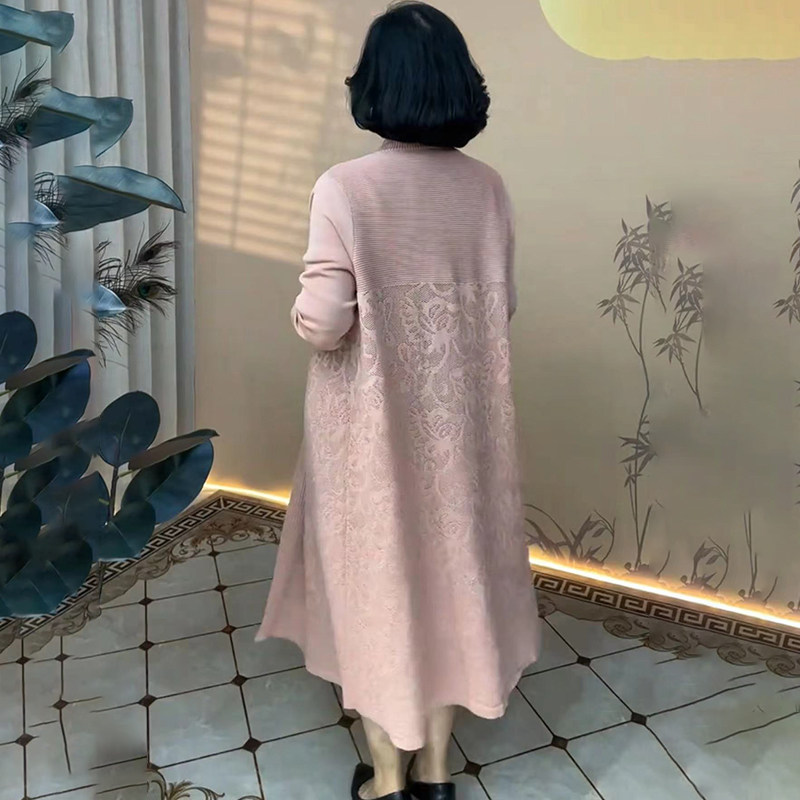 花边针织开衫 外套上衣 甜美拼接娃娃毛衣秋冬新款 蕾丝温柔针织衫
