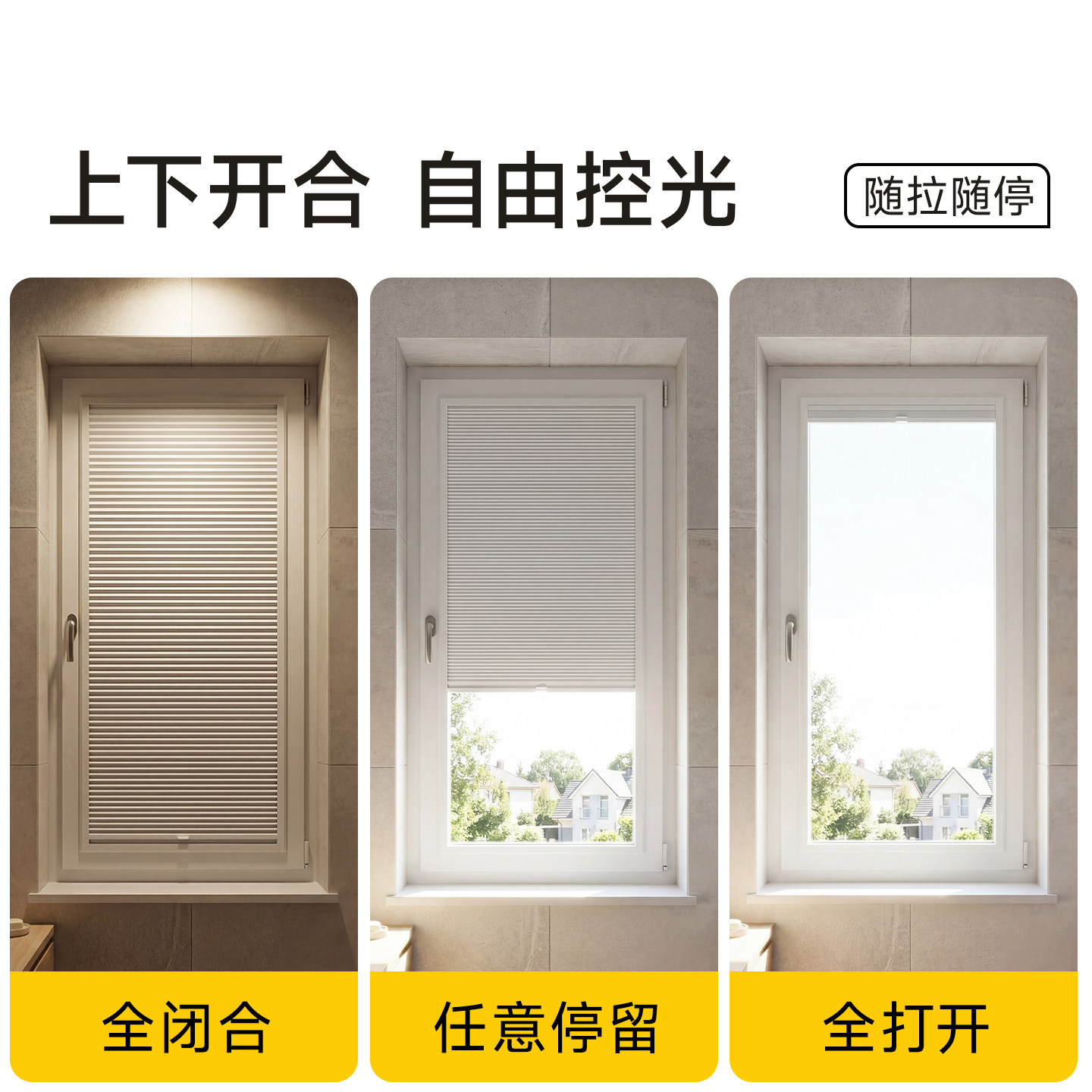 蜂巢帘内开窗专用百叶窗帘免打孔卫生间厨房内置蜂窝巢窗帘 内嵌式由