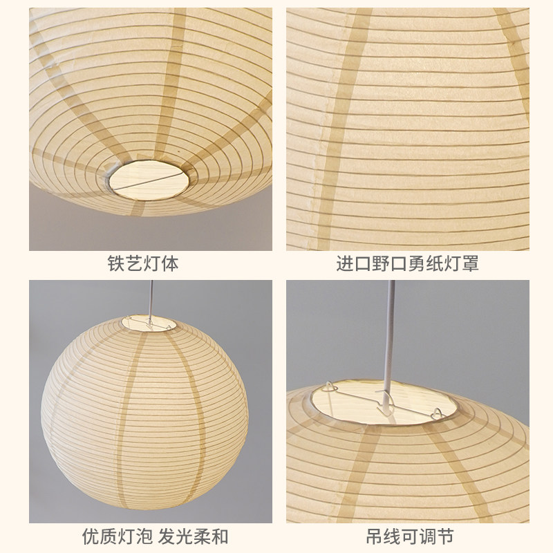 野口勇日式 店氛围吊灯 复古侘寂风圆球宣纸灯客厅餐厅卧室民宿服装