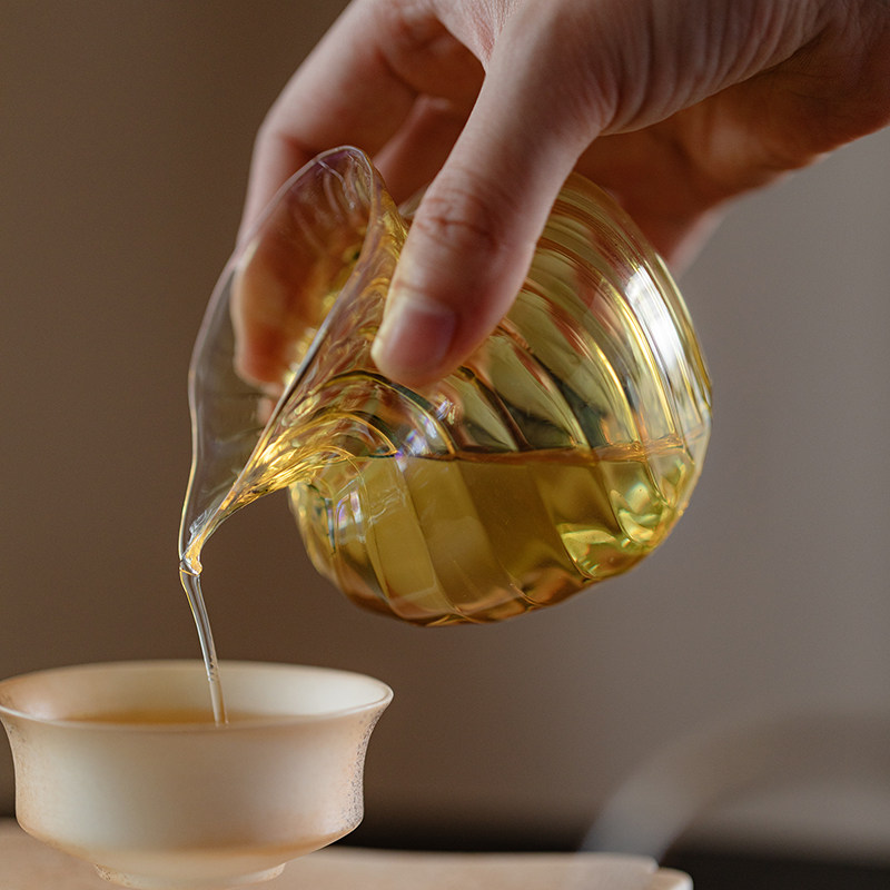手工耐高温高硼硅茶海高档功夫茶具分茶器 梵汝熏银玻璃公道杯日式由