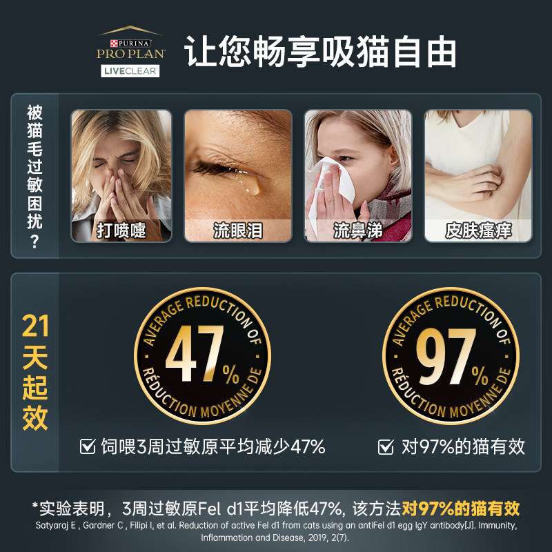 为您提供商品冠能LiveClear畅抚美国进口成猫猫粮减少猫毛过敏原1.59kg3包装的详细介绍,