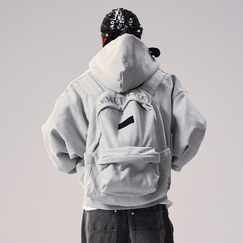 美式 潮牌外套男女 连帽卫衣背包2025秋冬国潮宽松休闲开衫 Remedy
