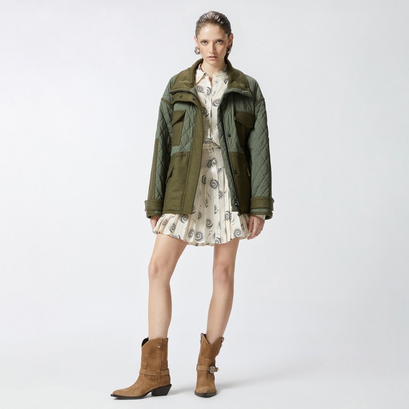 绣花拼接雪纺压褶宽松针织早春漂亮连衣裙 MOVEUP幻走2026春夏新品